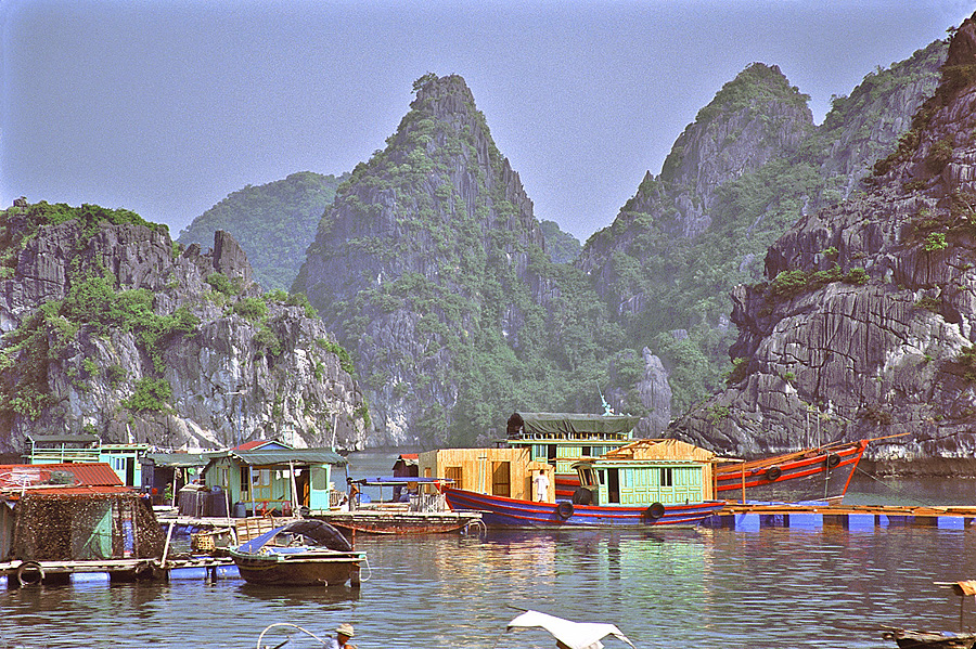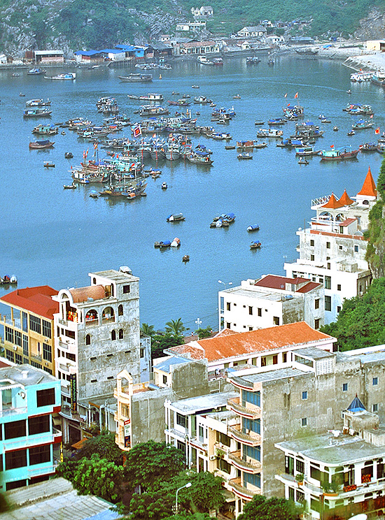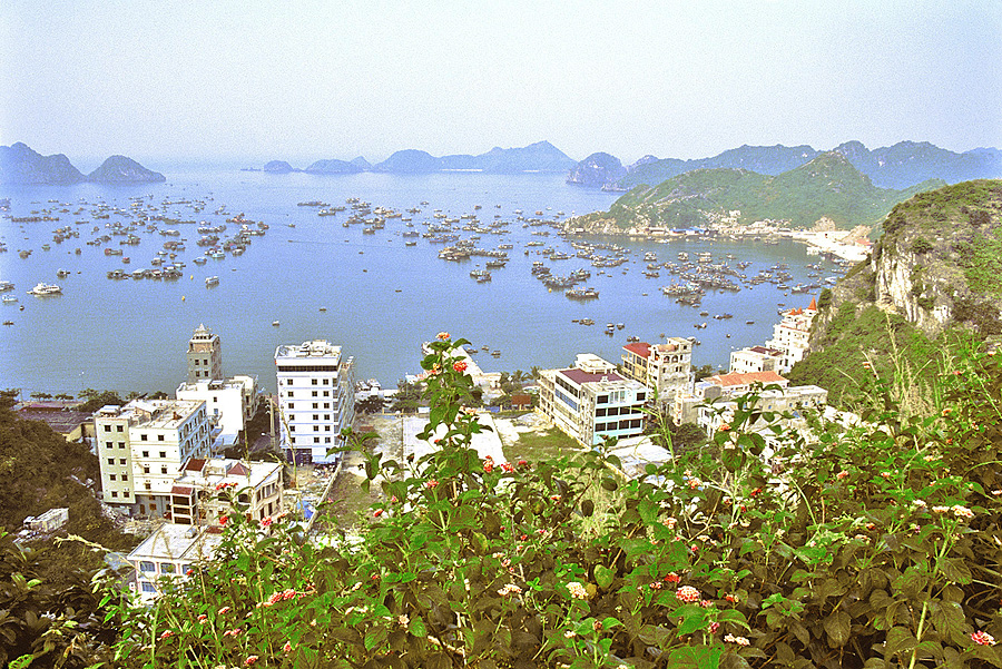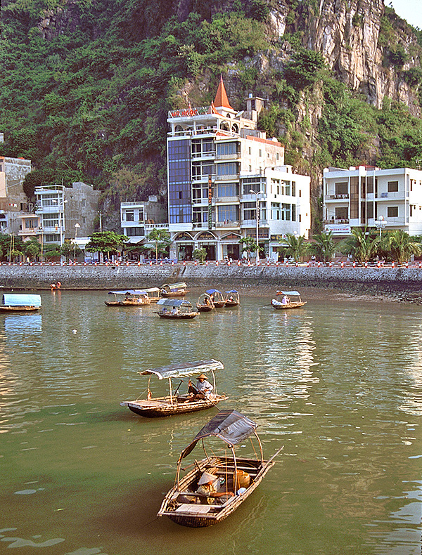 striking contrast to the newly-constructed tourist hotels - Halong Bay, North Vietnam |