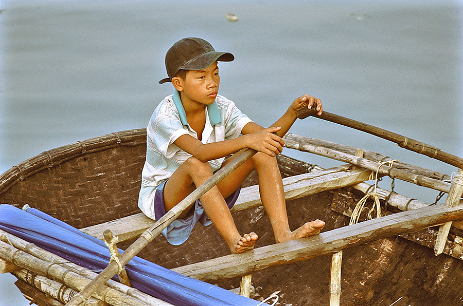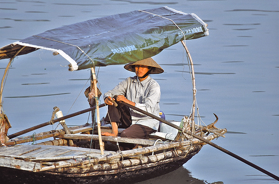 right, shows that the rower is seated facing forward - opposite to the traditional method - Perfume Pagoda (Chua Huong), North Vietnam |