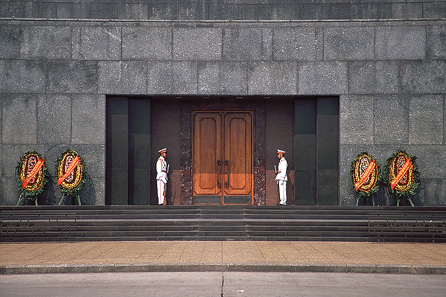 former dictator's embalmed body is on display in a glass sarcophagus (despite his stated desire to be cremated) - Hanoi, North Vietnam |