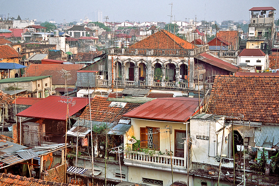 tiles and balconies reveals the strong French influence on the city's architecture - Hanoi, North Vietnam |