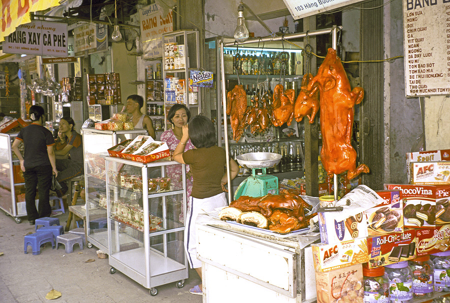 merchandise out into the sidewalk - Hanoi, North Vietnam |