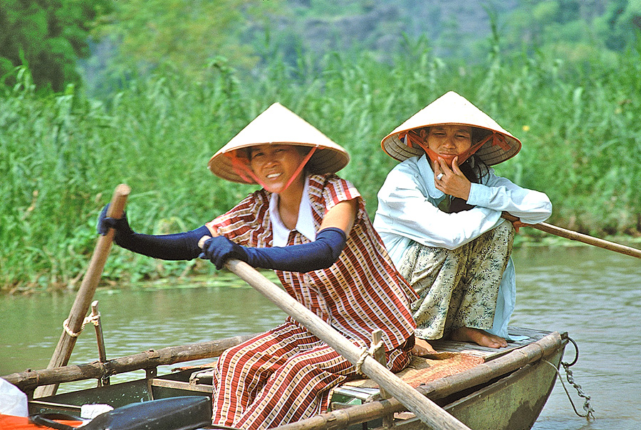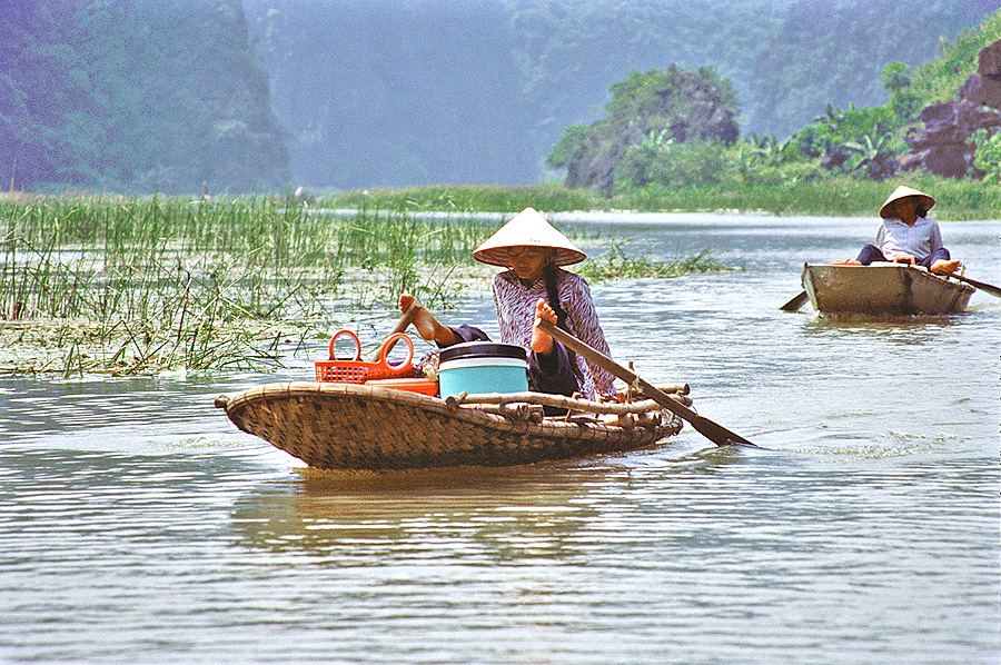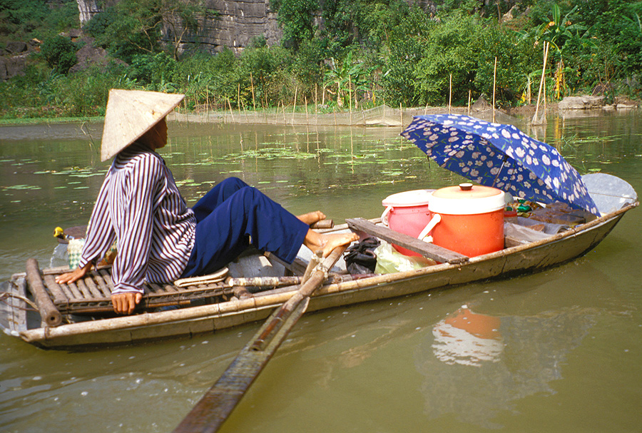 the boat, they manage to move swiftly using only their legs and feet - Perfume Pagoda (Chua Huong), North Vietnam |