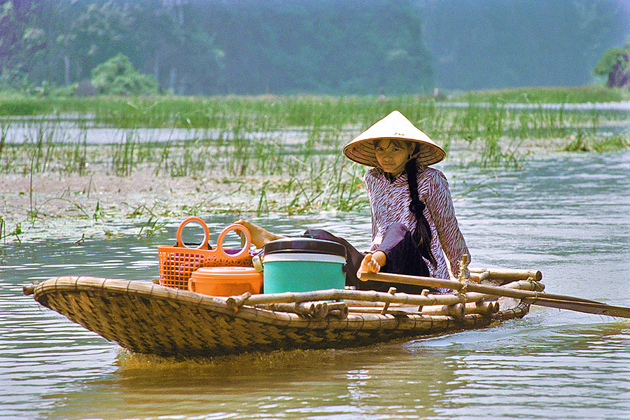 a young woman in a traditional boat - Perfume Pagoda (Chua Huong), North Vietnam |