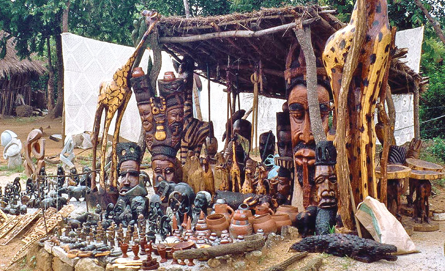 This fantastic collection of carvings and pottery along with the associated peddlers, created a souvenir gauntlet at the entrance to Great Zimbabwe - Great Zimbabwe, Zimbabwe |