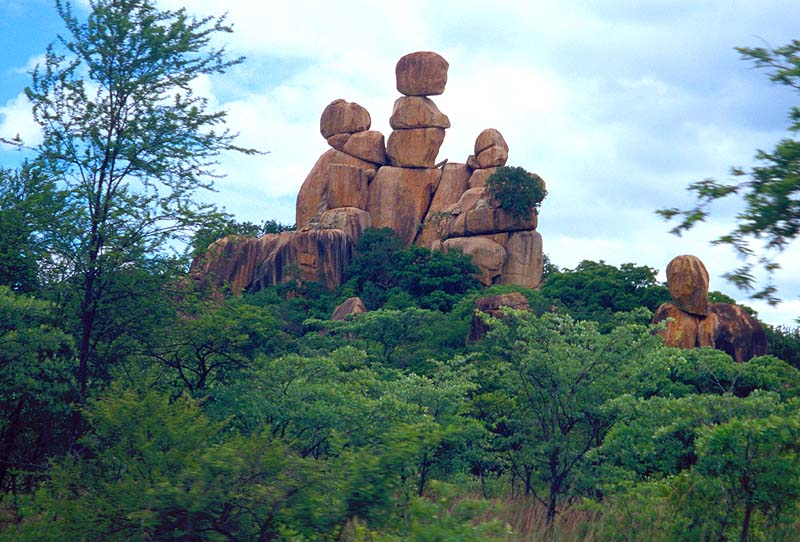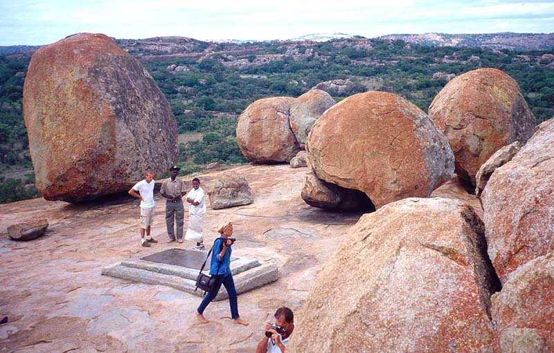 colonialism as well as the scholarship program funded by his estate. The Rhodes scholarship enables students from territories currently or previously under British rule (and Germany) to study at the University of Oxford. Regarding the photo, you might ask how such massive, rounded boulders could find their way to the summit of a granite mountain? Well ... time, rain, wind, temperature change ... or ancient giants? - Matobo N.P., Zimbabwe |