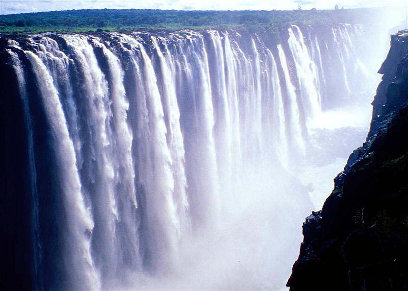 which is the world's largest sheet of falling water. The pre-colonial name of the falls, Mosi-oa-Tunya, means "the smoke that thunders" and is the official name for the falls in bordering Zambia - Victoria Falls, Zimbabwe |
