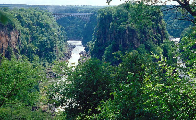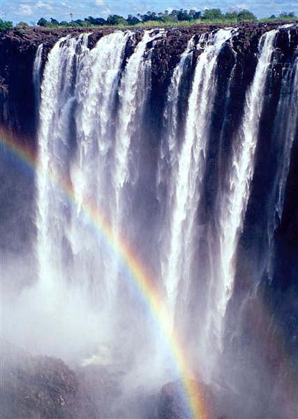 heavens! The towering plume of mist creates vivid rainbows as well as an isolated pocket of dripping rainforest - Victoria Falls, Zimbabwe |